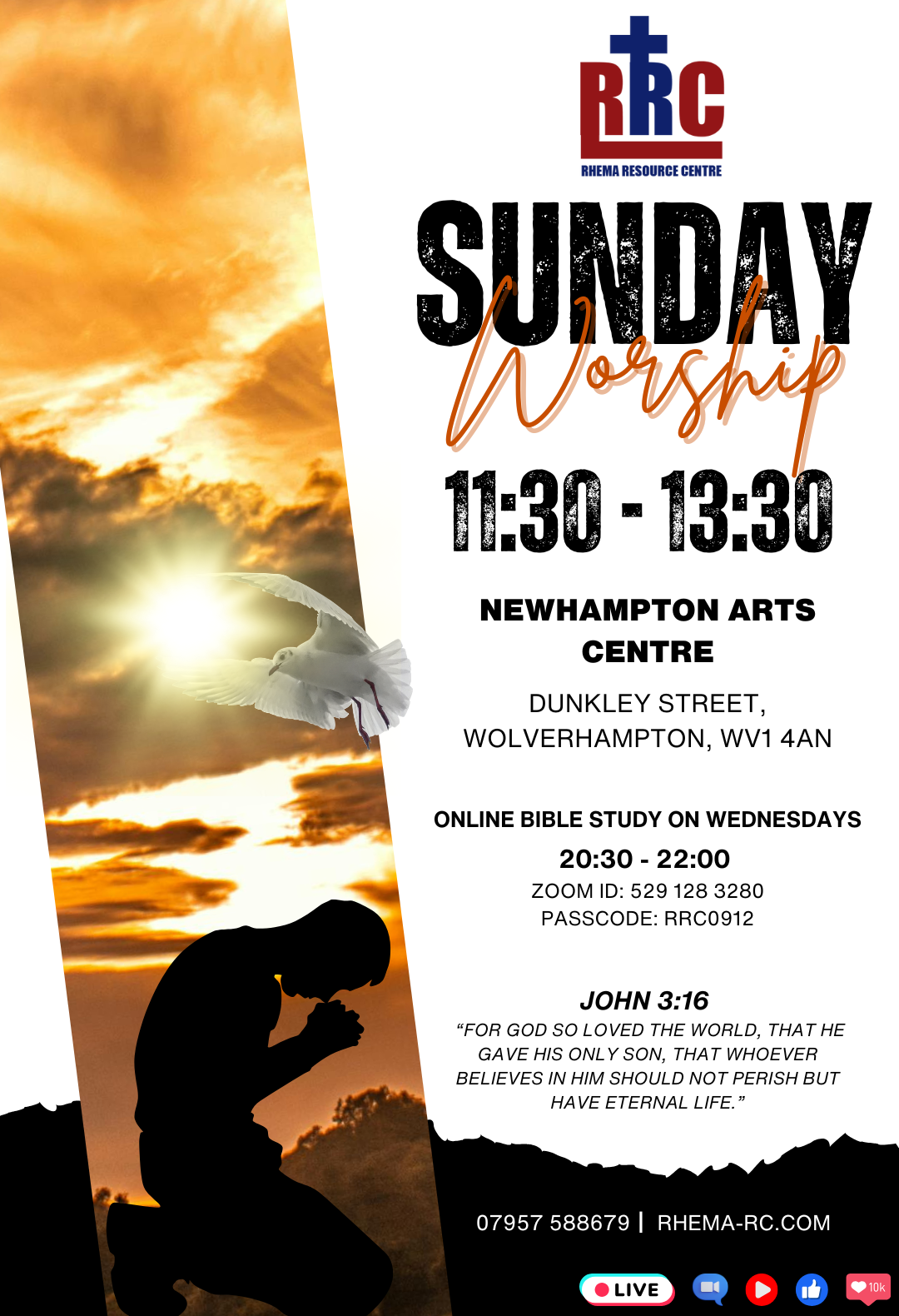 Sunday Service: Wolverhampton Dunkley St, Wolverhampton WV1 4AN or watch our Live service online via Youtube or Facebook. + Add to Google Calendar + iCal / Outlook export 00 days 00 hours 00 minutes 00 seconds Date Dec 07 2025 Time 12:00 pm - 2:00 pm Share this event